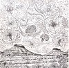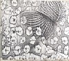 newsprint collage & chalk pastel on folded paper, 23 x 23 cm (9 x 9 in.)